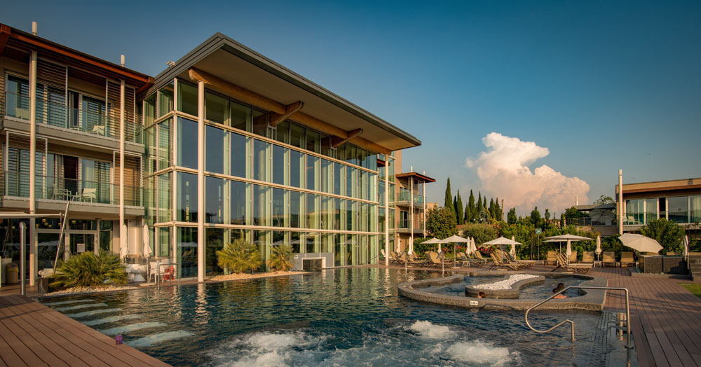 Das Vier-Sterne-Superior Aqualux Hotel Spa Suite & Terme befindet sich in Bardolino am Ostufer des Gardasees. Nur wenige Schritte entfernt vom quirligen Zentrum mit seinem malerischen Hafen, lebhaften Cafés und schmucken Gässchen sowie der Uferpromenade. Das von der KlimaHaus Agentur Bozen zertifizierte Klima-Hotel hat sich dem ganzheitlichen Wohlbefinden verschrieben. Und setzt damit neue Maßstäbe für einen nachhaltigen Tourismus.