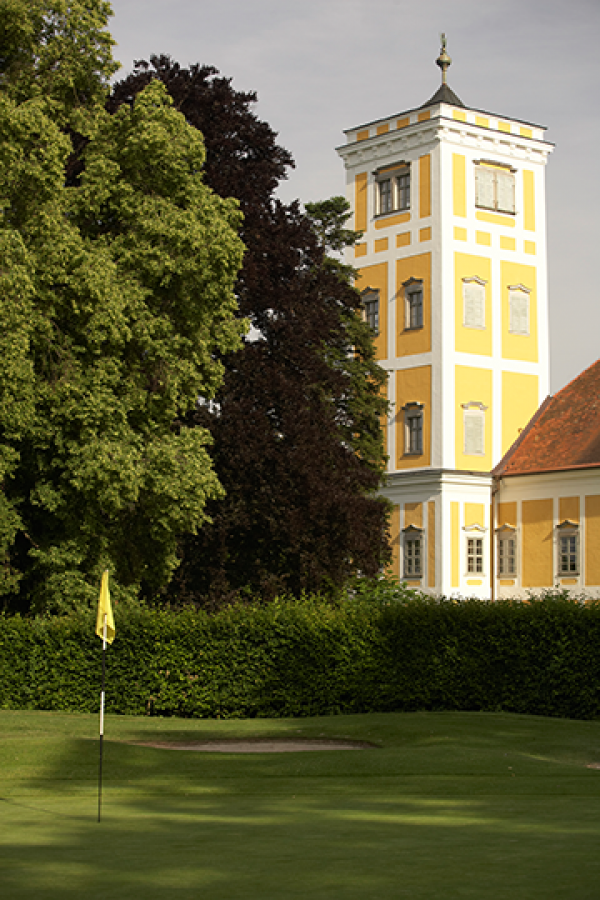 Der Nukleus des Golfclubs Linz – St. Florian: Mit der Idee einen eigenen Golfplatz zu bauen, trafen sich 1958 vier Linzer Honoratioren. Neun weitere Personen konnten gewonnen werden; braucht es, um so eine Idee zu verwirklichen, doch auch gehörig Geld. 1960 wurde der Club gegründet und man baute einen 9 Loch Platz in Puchenau knapp außerhalb von Linz. Dort spielten unter anderem Persönlichkeiten wie Heinrich Harrer, Klaus Nierlich, Toni Sailer, Alexander Maculan, Alfi Auersberg oder die Familie Mayr Melnhof. Golfplatz gibt’s in Puchenau keinen mehr, aber eine Golfplatzstraße in einer viel gelobten Gartenstadt. Der 18 Loch Championship-Course liegt heute im hügeligen Voralpenland, in St. Florian, 20 km von Linz entfernt. Das Linz und das St. Florian im Namen ist dieser Entstehungsgeschichte geschuldet. 1973 begann in St. Florian neben der Tillysburg der Bau von neun Löchern nach Plänen von Donald Harradine. 1976 fiel die Entscheidung auf 18 Löcher zu erweitern. Was ist nun edel an dem Golfplatz in St. Florian? Zunächst die Anfahrt neben der 9 durch eine alte Lindenallee auf das Schloss Tillysburg zu, dann dieses Schloss selbst, es ist imposant. Außerdem die typischen Merkmale eines älteren Golfplatzes, eines Parkland-Kurses: Schmale Fairways, wobei hier die Schneisen durch mächtige Baumreihen per se durchaus breit sind, aber das Kurzgeschnittene wird links und rechts bald von Semirough begleitet. Die vorgefundene, naturbelassene Landschaft, romantische Teiche, hier eine Phalanx von Rhododendren, dort schattige Verweilplätze mit Bänken, alles mit viel Liebe gemacht, das alles schafft ästhetischen Genuss, entfalten beim Betrachter Harmonie und Wohlbefinden. In mehreren Umbauphasen hat man den Platz weiterentwickelt und heutigen Standards angepasst, so hat man die Grüns vergrößert, auf Grund ihrer Ondulierung und ihrer Schnelligkeit bleiben sie herausfordernd. Der Golfclub Linz – St. Florian gehört zu den Leading Golf Courses of Austria und unterwirft sich deren Beurteilung. Nehmen wir es als Ausweis für formidables Platzdesign und hervorragende Platzpflege, Clubkultur und exzellentes Service.