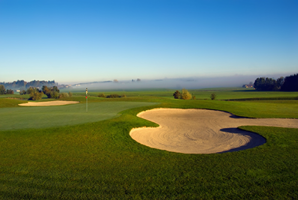 Variantenreiches Spiel vor den Toren Salzburgs … Der abwechselnd flache, leicht hügelige Meisterschaftsplatz und die schnellen trickreichen Grüns fordern den technisch und taktisch versierten Golfer genauso wie den Golf-Einsteiger. Landschaftlich bietet der 100 ha große Naturpark-Course mit seinem üppigen Baumbestand, Wald und vielen Fairways mit Bachläufen und Teichen herrliche Panoramablicke auf die bayerische und österreichische Bergwelt sowie die Festung Hohen Salzburg. Ein Inselgrün und knapp 40 Bunker erschweren das Anspiel der Grüns. Nach der Runde laden die herrliche Sonnenterrasse und das Restaurant im Clubhaus ein.