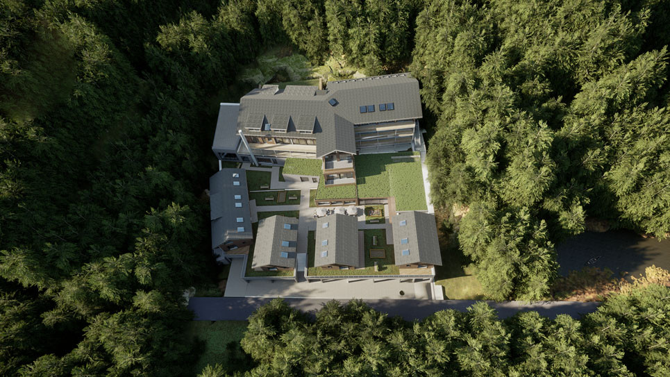 Zwischen den Runden sorgen der Spa-Bereich mit Pool, Sauna, Ice-Lounge und Medical Wellness für Entspannung. Wer es naturnah mag, taucht bei einer geführten Shinrin Yoku Session tief in die beruhigende Kraft des Waldes ein. 25 stilvolle Apartments und fünf luxuriöse Chalets mit bis zu 100 m² Wohnfläche, voll ausgestatteten Küchen und privater Atmosphäre, ermöglichen maximale Frei heit und Rückzug. Der Blick in den Wald gehört zur Ausstattung – ebenso wie feinste Materialien, Gaskamine in den Chalets und ein optionaler Butler-Service.