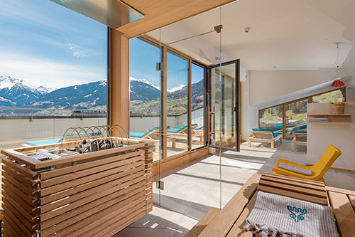 Das neue alpine casual Hotel Blü ist die neue, lässige Homebase für Freigeister und Naturbegeisterte im Herzen von Bad Hofgastein – unweit vom Gasteiner 18 Loch Golfplatz entfernt – und ebnet dem Genießen und der Offenheit gegenüber allem, was nichts mit Alltag zu tun hat, den Weg. Als Golf- Premium Partner Hotel erhalten alle Gäste – 50 % Greenfee Ermäßigung. Fröhliche Farben, österreichische moderne Kunst und außergewöhnliche Details prägen die Gault Millau Neuentdeckung des Jahres. 30 neue Designzimmer im „Baumhaus“ laden Interiorliebhaber zum Chillen ein. Relaxt wird auch im Himmelblü am Dach im coolen Design. Ob beim täglichen Yoga, in der Sauna, im Fitnessbereich oder im Dachgarten der Sinne: In der 90° warmen Sauna sitzen und den Anblick des Graukogel und die Kraft des Gasteinertals aufsaugen, oder lieber bei 50° in der Biosauna schwitzen, dann am Dachgarten Sonne tanken oder mit Aussicht auf die Schlossalm nachruhen. Wer gern liest, sucht sich in der Hotel-Bibliothek ein Buch aus und macht es sich auf den schönen Holzliegen bequem. In einer der Kuschelecken lässt sich gut ein Nachmittagsschläfchen halten. Gegessen wird, wann immer es in den sportlichen oder herrlich faulen Tag passt. Im Blü wird grenzenlos genossen, gemischt und verschmolzen, ausprobiert und mit Leidenschaft gekocht. Jeden Tag in aller Früh die Gipfel erklimmen oder bis abends im Bett liegen und faulenzen. Guter Musik lauschen und beste Drinks kredenzt bekommen oder sich in die Lieblingslektüre vertiefen. Denken oder tun. Bergtour oder Spa-Session. Alles geht im neuen Blü.