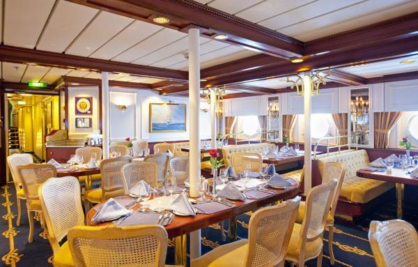 Das Abendessen, um 19:30 Uhr, bietet täglich ein Wahl-Menü mit bis zu 6 Gängen (uns hat es ausgezeichnet geschmeckt!) und unserer Tischkellner Darwin (Philippinen) hat es uns 15 Tage mit einem Lächeln im Gesicht serviert!
