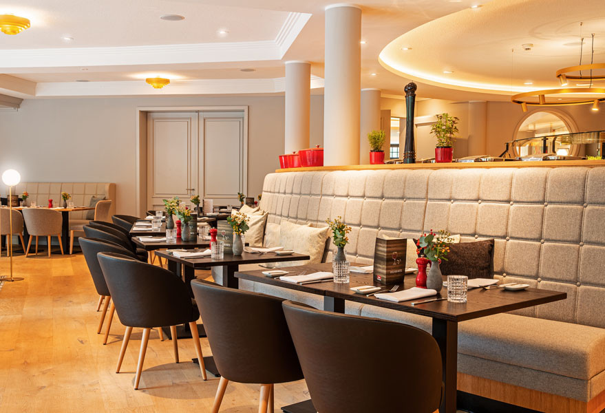 Lassen Sie sich in unserem Restaurant von unseren regionalen, saisonalen Köstlichkeiten verwöhnen – natürlich mit Blick ins Grüne.