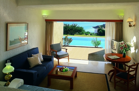 Alle Zimmer und Suiten haben Meerblick, sind durchwegs ausgestattet mit Klimaanlage/Heizung, Minibar, TV, Safe und Föhn. Die en-suite Marmorbäder sind mit Musik über den Fernseher versehen und verfügen über Telefonverbindung ins Zimmer. Im Restaurant „Nafsika“ wird bei herrlicher Aussicht über die Bucht das Frühstück und das Table d’hôtel Abendessen serviert. In den Sommermonaten bietet das „Elies“ Restaurant im Olivenhain mediterranes und kretisches à la carte Abendessen, während in der Hochsaison in der „Odysseus“ Taverne direkt am Meer frische Meeresfrüchte und griechische Gerichte zum Mittagessen serviert werden.