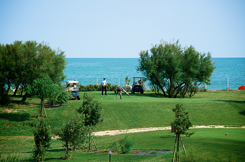 Das International Beach Hotel, eines der renommiertesten Hotels in Caorle, befindet sich nahe dem Strand von Ponente und der Altstadt von Caorle. Das Hotel ist das ganze Jahr über geöffnet, also ideal für einen Kurz-Golf Urlaub, vor allem außerhalb der Haupt-Bade-Saison. Auch für Golfgruppen ist das Internation Beach Hotel ideal. Gastfreundschaft ist die Stärke der Familie Molena, die mit ihrer langjährigen Erfahrung im Hotelbereich Tradition und Innovation verbindet. Das Auto kann am hoteleigenen Parkplatz bleiben, denn die Altstadt, der Hafen und der Strand sind fußläufig erreichbar. Seit 2017 wurde das Hotel einer umfassenden Renovierung unterzogen. Modern und mit einem raffinierten Look, präsentiert sich das Haus als idealer Standort für Strand-, Aktiv und Golfurlauber. Unter anderem wurde ein neuer Außenpool, im ersten Stock mit großer Sonnenterrasse und Whirlpool, gebaut und heuer wird das Hotel um einen Wellnessbereich mit beheiztem Whirlpool, Sauna, Dampfbad, Eiswasserfall und Relax-Zone ergänzt. Am eigenen Privatstrand warten Liegestühle, Sonnenschirme, Kabinen und Duschen und für zahlreiche sportlichen Aktivitäten abseits vom Golfen ist gesorgt: Beach-Volleyball, Beach-Tennis und Boccia, Wassergymnastik und Fitnesstraining werden im Hotel angeboten. Für einen Radausflug in der Umgebung, oder zu den Fischerhütten in der Lagune, stehen Leih-Fahrräder zur Verfügung. Die neuen und elegant eingerichteten Zimmer bieten jeglichen Komfort und in der Lounge-Bar werden die Abende bei einem außergewöhnlich guten Cocktail etwas länger. Das Restaurant begeistert mit typischen Gerichten der lokalen „Caorlotta“-Tradition sowie innovativen Gerichten, vom Chefkoch Gianluca aus lokale Produkten zubereitet und mit einer Kombination von Aromen, die überraschen werden. Der Golfclub Pra’ del Torri ist nur 10 Autominuten vom Hotel entfernt. Hotelgäste erhalten 30% Ermäßigung auf das Greenfee. Abschlagzeiten können über das Hotel gebucht werden. Golfpakete werden gerne individuell und für Gruppen auf Anfrage zusammengestellt.