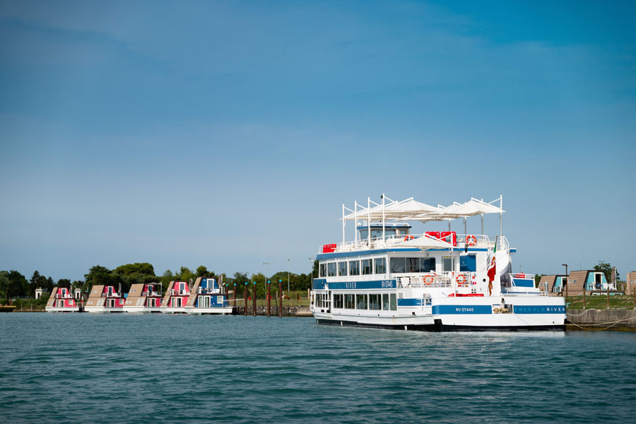 Für Erfrischung sorgt die liebevoll gepflegte Poollandschaft des Resorts oder ein Sprung in die perfekt temperierte Adria am nahen Strand von Lignano Sabbiadoro. Das Marina Azzurra Resort kombiniert den Komfort eines exklusiven Ferienerlebnisses mit dem unvergleichlichen Charme des Dolce Vita. Ein Highlight ist das Emerald River Clubhouse, ein großes Restaurant-Schiff, das mit typisch italienischen Gerichten für kulinarische Höhepunkte sorgt. Und wer seinen Abend entspannt ausklingen lassen möchte, genießt einen Aperol Spritz in der Sky Cocktail Bar auf dem Sonnendeck, begleitet vom sanften Plätschern des Wassers. Meraviglioso!