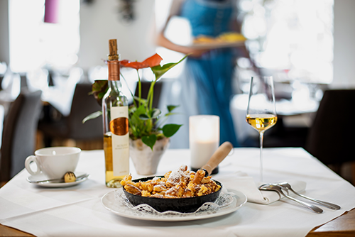 Wer in den Steinerwirt kommt, darf sich vor allem auf viel Genuss freuen. Den Gästen bleibt selbst überlassen, wann sie im Hotel und wann lieber auswärts speisen. Aber so viel sei gesagt: Die Kulinarik wird in diesem Hause großgeschrieben. Das bestätigt auch Simon Schuster und schenkt währenddessen noch ein Gläschen Wein nach. Die edlen Tropfen werden in einem uralten Kellergewölbe gelagert und die schmackhaften Speisen im Sommer auch gern im Gastgarten serviert. Im Steinerwirt setzt man auf Regionalität. Und der Urlaub wird mit einer Portion köstlichem Tafelspitz oder süßem Kaiserschmarren perfekt. Doch nicht nur kulinarisch, sondern auch Wellness-technisch weiß das Haus aus dem Jahre 1493 zu überzeugen. Zur Entspannung werden Sie kurzerhand auf das Dach geführt. Und da lässt sich’s, bei Spitzen-Panorama und Rundum-Feel-Well-Service, besonders gut durchatmen.