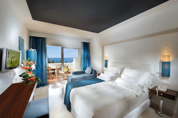 Natürlich überzeugen auch die Zimmer und Suiten des Hotels Jardín Tropical, die jetzt alle mit ihrem frischen, modern-eleganten Design glänzen: Das strahlende Blau-Weiß spiegelt Himmel, Meer und weiße Mauern wieder und bildet gemeinsam mit der hochwertigen Ausstattung sowie den Ausblicken auf Palmen, Meer oder Berge ein perfektes Refugium für einen gemütlichen und erholsamen Aufenthalt.