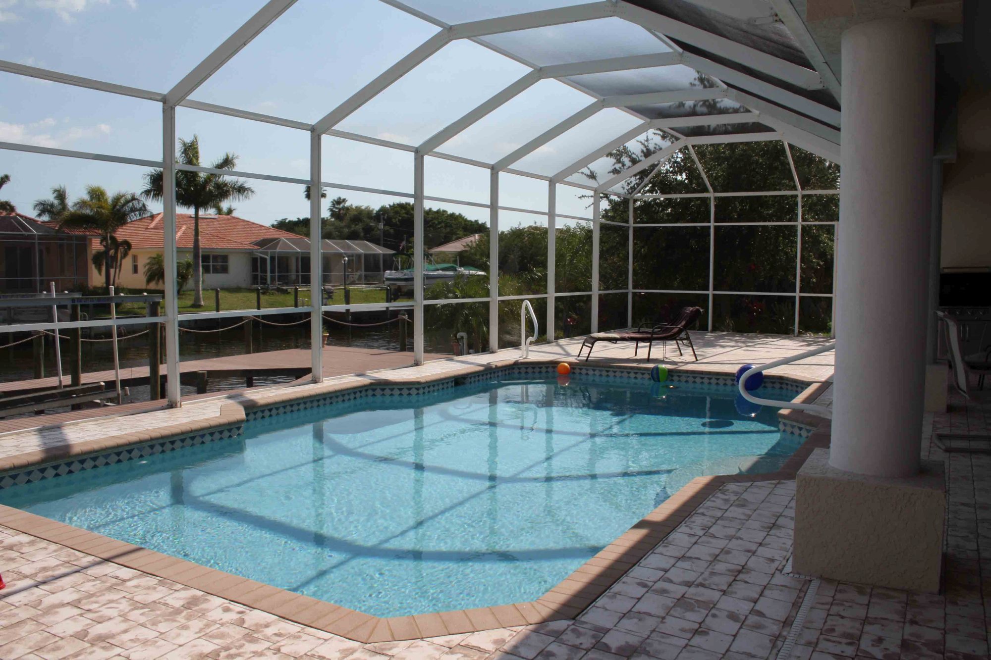 Die 2004 erbaute Villa Royal in Cape Coral bietet ausreichend Platz für sechs Personen, da sie über drei getrennte Schlafzimmer, zwei Badezimmer, ein geräumiges Wohnzimmer mit offener Küche, einen großzügigen Pool (mit dem obligaten Moskitoschutz!) und einen Bootssteg (mit zumietbarem Motorboot) verfügt. Die Küche ist komplett mit Geschirr und allen Küchengeräten eingerichtet, im Poolbereich steht zudem ein Gasgriller bereit, um zünftige BBQs zu veranstalten. Selbstverständlich sind auch mehrere Fernseher mit unzähligen Kanälen (inkl. Golfchannel!) und eine Hifi-Anlage vorhanden.
