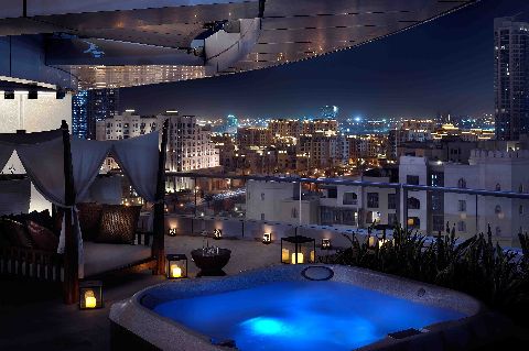 Die 171 Gästezimmer befinden sich in den Stockwerken sieben bis zwölf, davon sind 34 Clubzimmer. Die Zimmer verfügen fast alle über einen eigenen Balkon, die durchschnittliche Zimmergröße liegt bei 70 Quadratmetern – die Räume zählen damit zu den größten in Dubai. Die zusätzlichen 25 Suiten sind mit großen Terrassen ausgestattet, vier davon verfügen über einen eigenen Außenbereich mit Jacuzzi.
