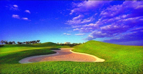 „The Montgomerie“, ein 18-Loch Championship-Platz, wurde von dem namensgebenden Schotten Colin Montgomerie und dem Architekten Desmond Muirhead gestaltet. Das Design wird als „Linkskurs in der Wüste“ bezeichnet, die Fairways sind breit und die Grüns groß und onduliert, was Spielern die Möglichkeit für „Bump and Runs“ wie auf den britischen Inseln bietet. In das Layout wurden zudem 14 künstliche Seen und 81 große Bunker integriert. Das 13. Loch, ein Par 3, verfügt über eines der größten Einzelgrüns der Welt (welches die Form der Vereinigten Arabischen Emirate hat). Als „Signature Hole“ gilt jedoch Nummer 18, ein 656 (!) Yards langes Par 5 – das „Schlangenloch“ wird von einem S-förmigen Wasserhindernis gekreuzt, welches auf ungenaue Drives wartet, und auch vor dem Grün lauert. Weiters gibt es einen Flutlicht beleuchteten 9-Loch Par 3 Kurs , eine tolle Übungsanlage, zwei Golfshops und eine Golf-Academy.